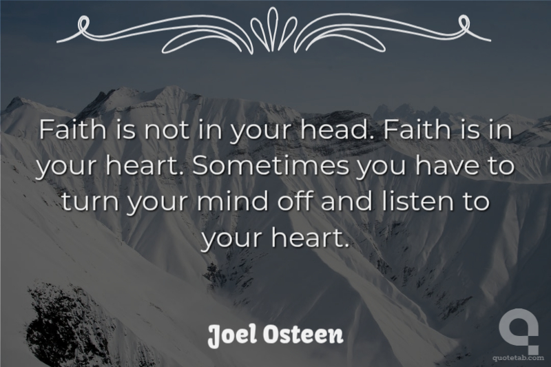 Faith is not in your head. Faith is in your heart. Sometimes you have to turn your mind off and listen to your heart.