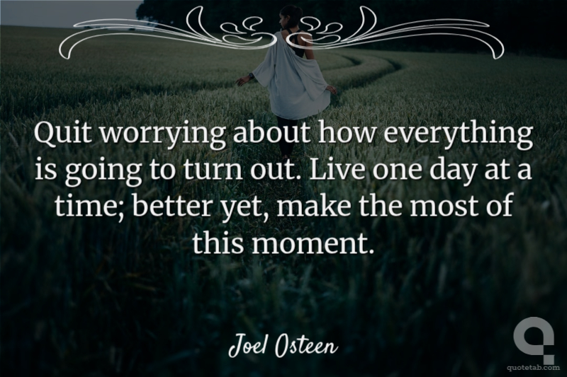 Quit worrying about how everything is going to turn out. Live one day at a time; better yet, make the most of this moment.