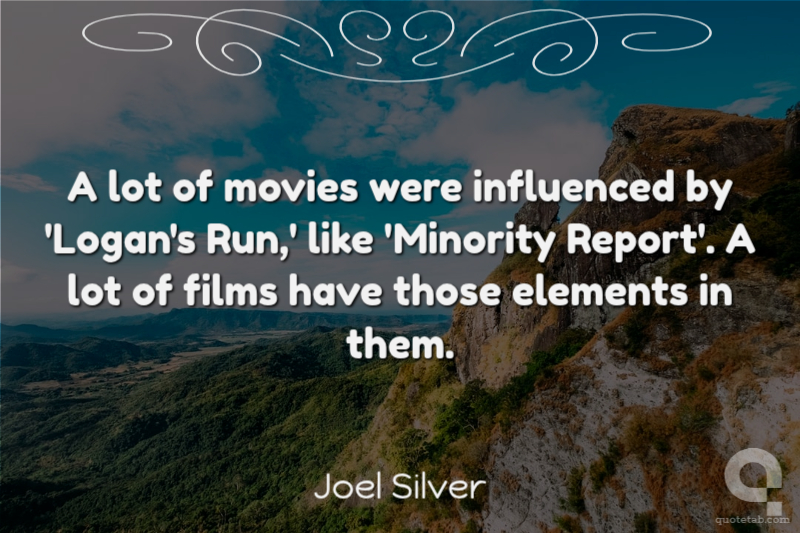 A lot of movies were influenced by 'Logan's Run,' like 'Minority Report'. A lot of films have those elements in them.