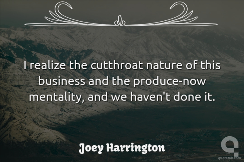 I realize the cutthroat nature of this business and the produce-now mentality, and we haven't done it.