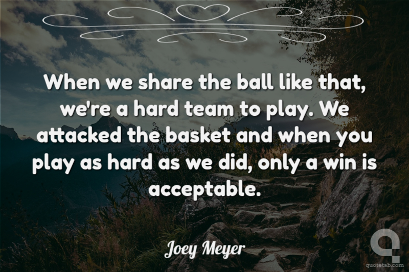 When we share the ball like that, we're a hard team to play. We attacked the basket and when you play as hard as we did, only a win is acceptable.