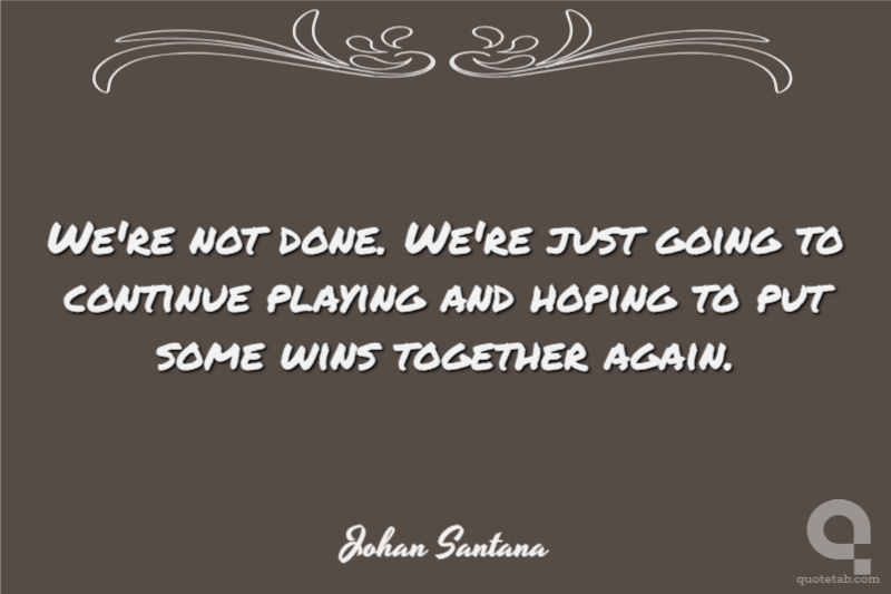 We're not done. We're just going to continue playing and hoping to put some wins together again.
