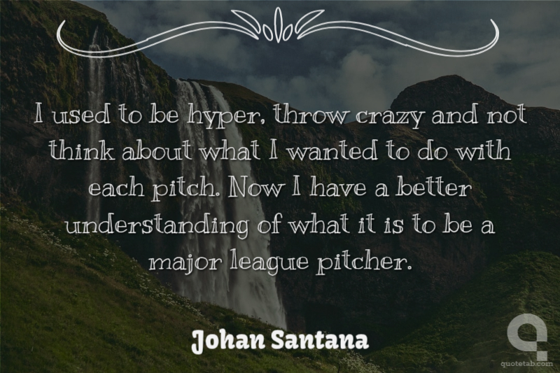 I used to be hyper, throw crazy and not think about what I wanted to do with each pitch. Now I have a better understanding of what it is to be a major league pitcher.