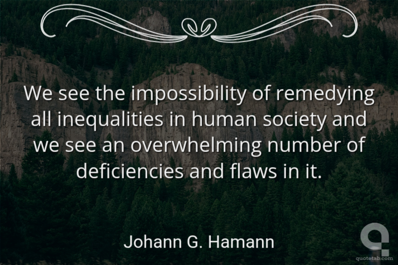 We see the impossibility of remedying all inequalities in human society and we see an overwhelming number of deficiencies and flaws in it.