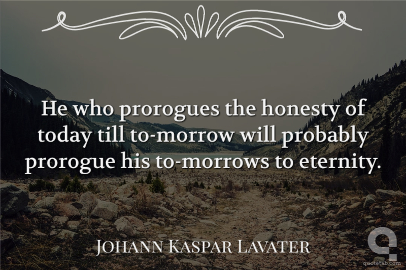 He who prorogues the honesty of today till to-morrow will probably prorogue his to-morrows to eternity.