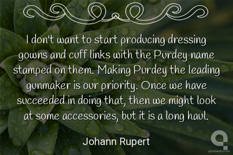 I don't want to start producing dressing gowns and cuff links with the Purdey name stamped on them. Making Purdey the leading gunmaker is our priority. Once we have succeeded in doing that, then we might look at some accessories, but it is a long haul.