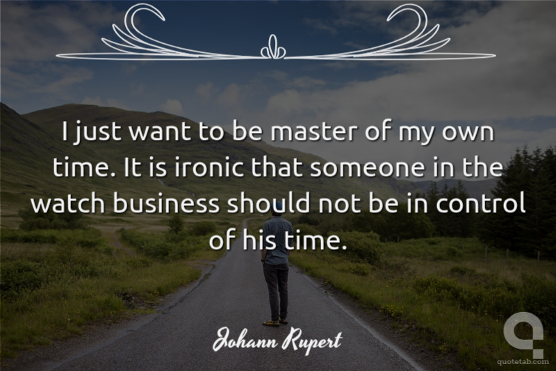I just want to be master of my own time. It is ironic that someone in the watch business should not be in control of his time.