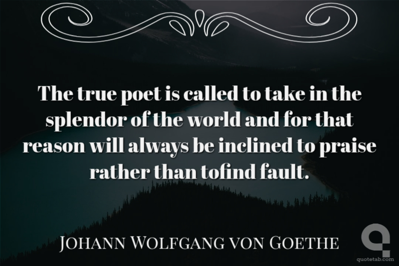 The true poet is called to take in the splendor of the world and for that reason will always be inclined to praise rather than tofind fault.