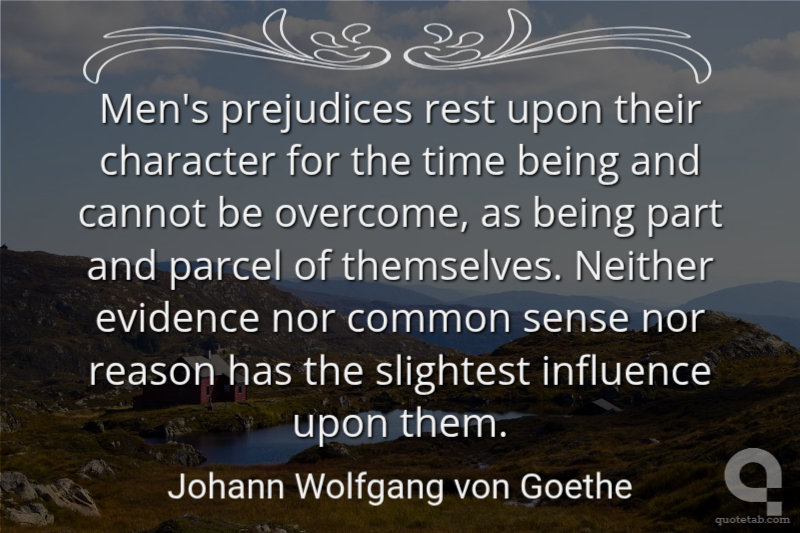 Men's prejudices rest upon their character for the time being and cannot be overcome, as being part and parcel of themselves. Neither evidence nor common sense nor reason has the slightest influence upon them.