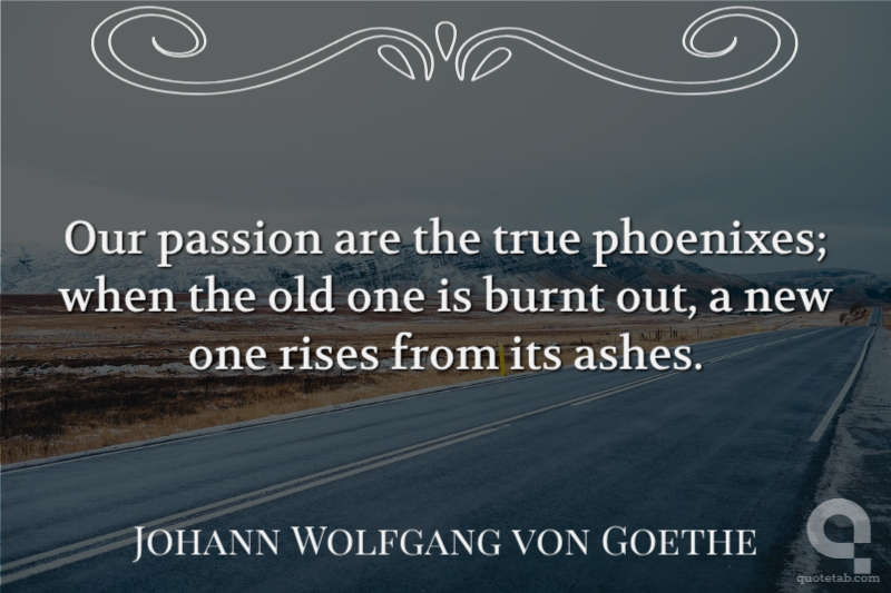 Our passion are the true phoenixes; when the old one is burnt out, a new one rises from its ashes.