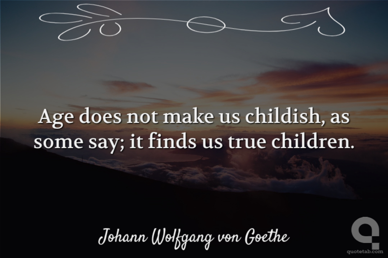 Age childish makes, they say, but 'tis not true; We're only genuine children still in Age's season. [Ger., Das Alter macht nicht kindisch, wie man spricht, Es findet uns nur noch als wahre Kinder.]