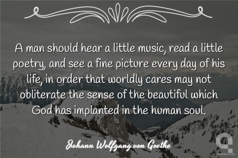 A man should hear a little music, read a little poetry, and see a fine picture every day of his life, in order that worldly cares may not obliterate the sense of the beautiful which God has implanted in the human soul.