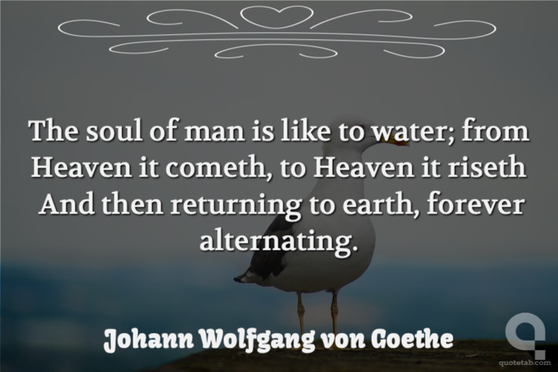 The soul of man is like to water; from Heaven it cometh, to Heaven it riseth And then returning to earth, forever alternating.