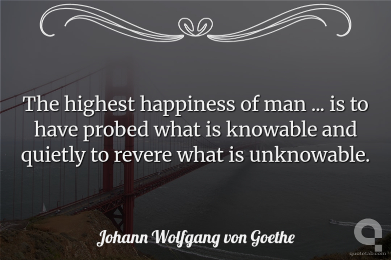 The highest happiness of man ... is to have probed what is knowable and quietly to revere what is unknowable.