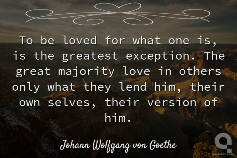 To be loved for what one is, is the greatest exception. The great majority love in others only what they lend him, their own selves, their version of him.