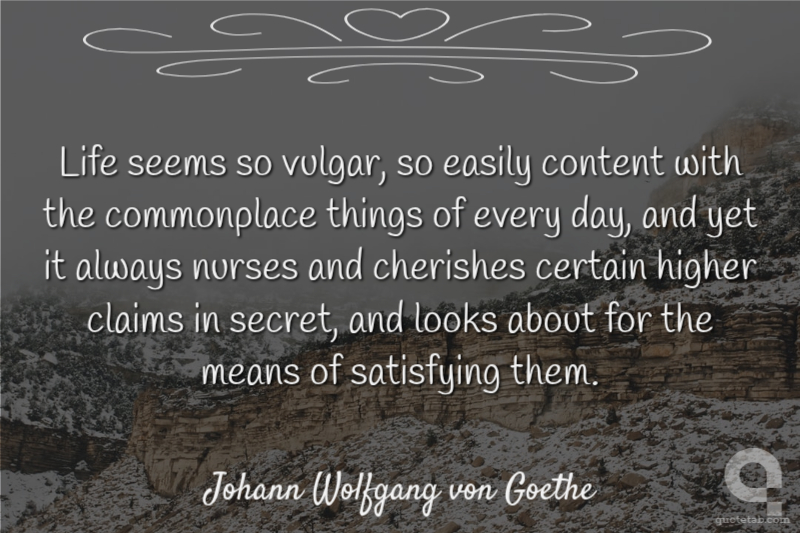 Life seems so vulgar, so easily content with the commonplace things of every day, and yet it always nurses and cherishes certain higher claims in secret, and looks about for the means of satisfying them.