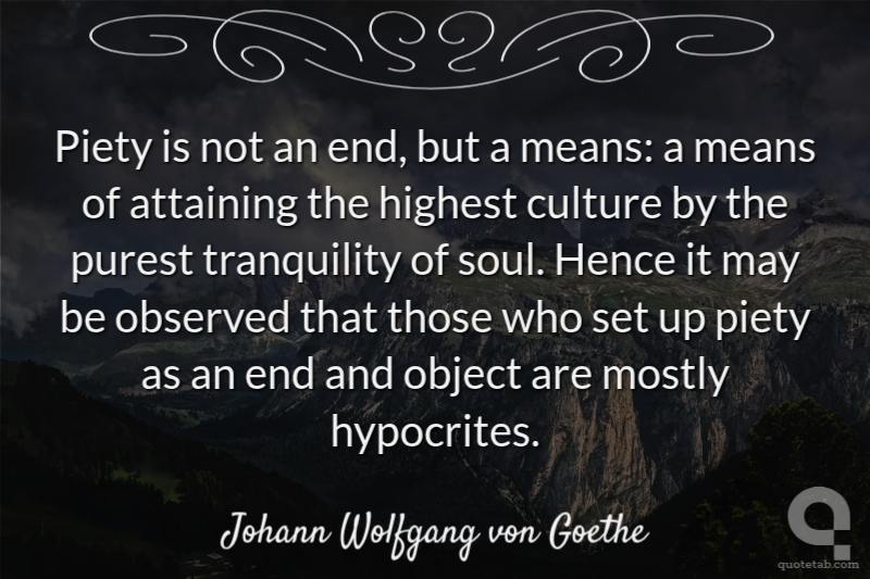 Piety is not an end, but a means: a means of attaining the highest culture by the purest tranquility of soul. Hence it may be observed that those who set up piety as an end and object are mostly hypocrites.