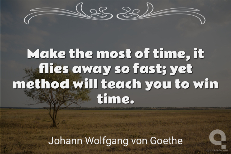 Make the most of time, it flies away so fast; yet method will teach you to win time.
