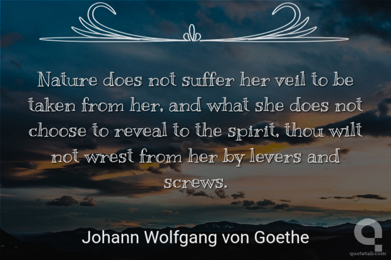 Nature does not suffer her veil to be taken from her, and what she does not choose to reveal to the spirit, thou wilt not wrest from her by levers and screws.