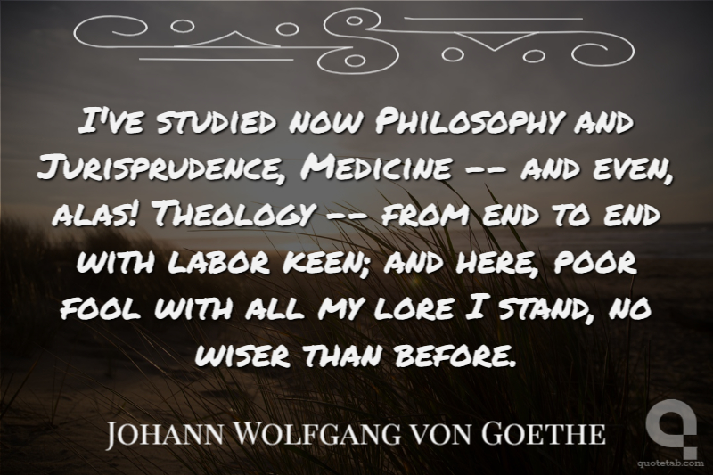 I've studied now Philosophy and Jurisprudence, Medicine - and even, alas! Theology - from end to end with labor keen; and here, poor fool with all my lore I stand, no wiser than before.