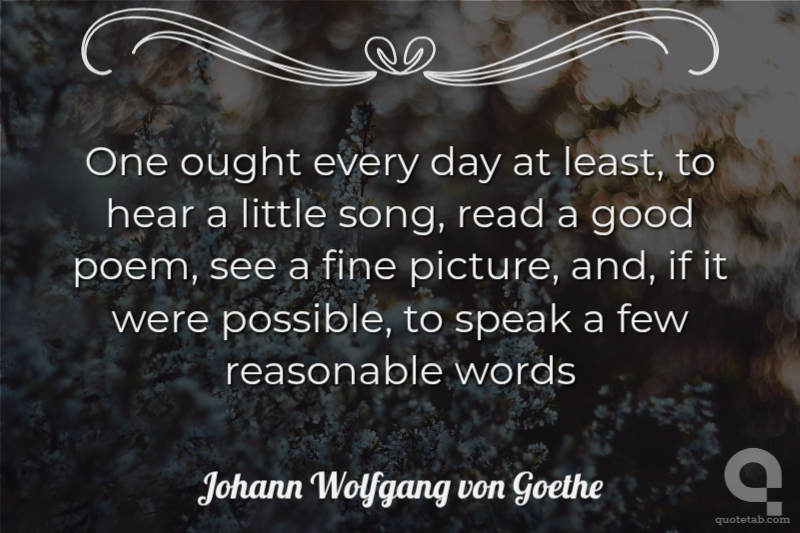 One ought, every day at least, to hear a little song, read a good poem, see a fine picture and, if possible, speak a few reasonable words