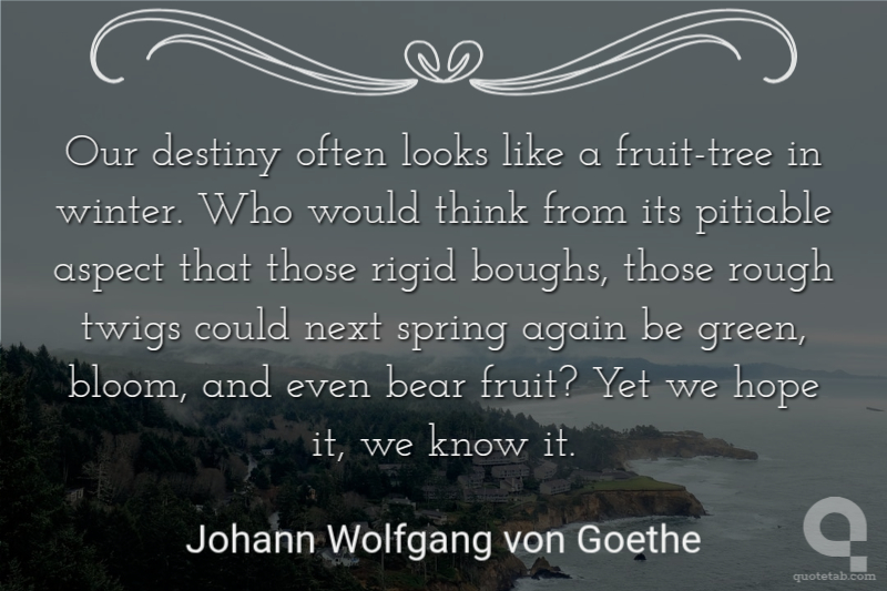 Our destiny often looks like a fruit-tree in winter. Who would think from its pitiable aspect that those rigid boughs, those rough twigs could next spring again be green, bloom, and even bear fruit? Yet we hope it, we know it.