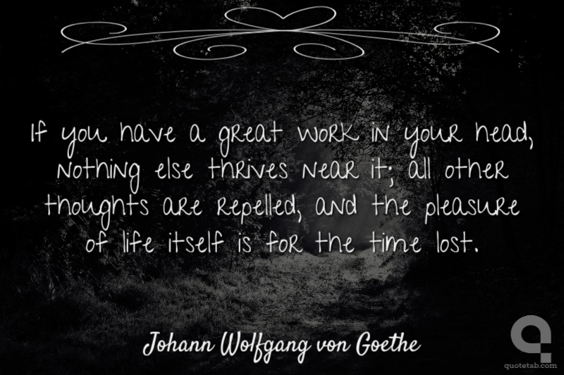 If you have a great work in your head, nothing else thrives near it; all other thoughts are repelled, and the pleasure of life itself is for the time lost.