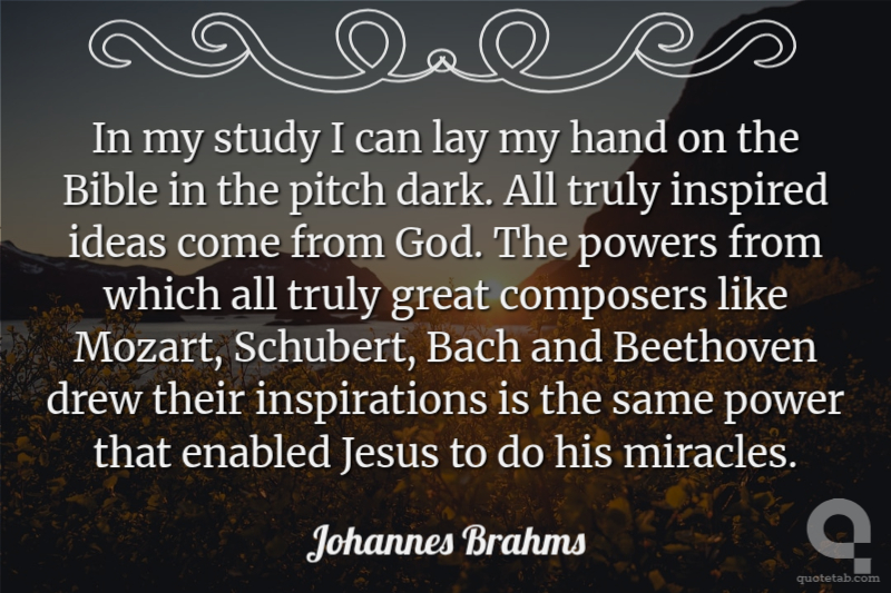 In my study I can lay my hand on the Bible in the pitch dark. All truly inspired ideas come from God. The powers from which all truly great composers like Mozart, Schubert, Bach and Beethoven drew their inspirations is the same power that enabled Jesus to do his miracles.