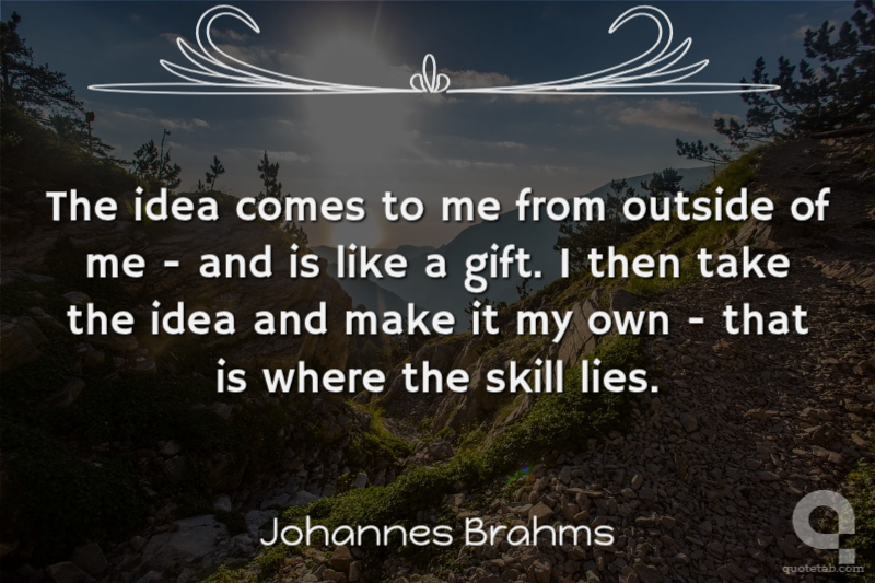 The idea comes to me from outside of me - and is like a gift. I then take the idea and make it my own - that is where the skill lies.
