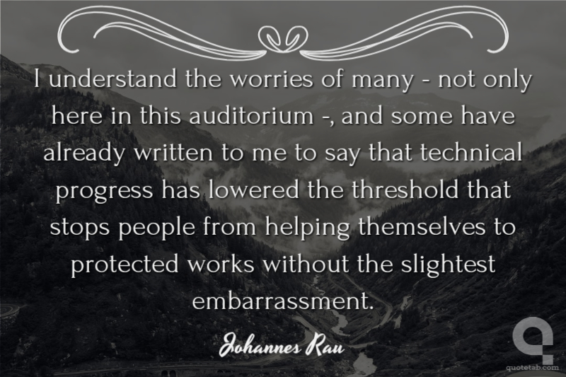 I understand the worries of many - not only here in this auditorium -, and some have already written to me to say that technical progress has lowered the threshold that stops people from helping themselves to protected works without the slightest embarrassment.