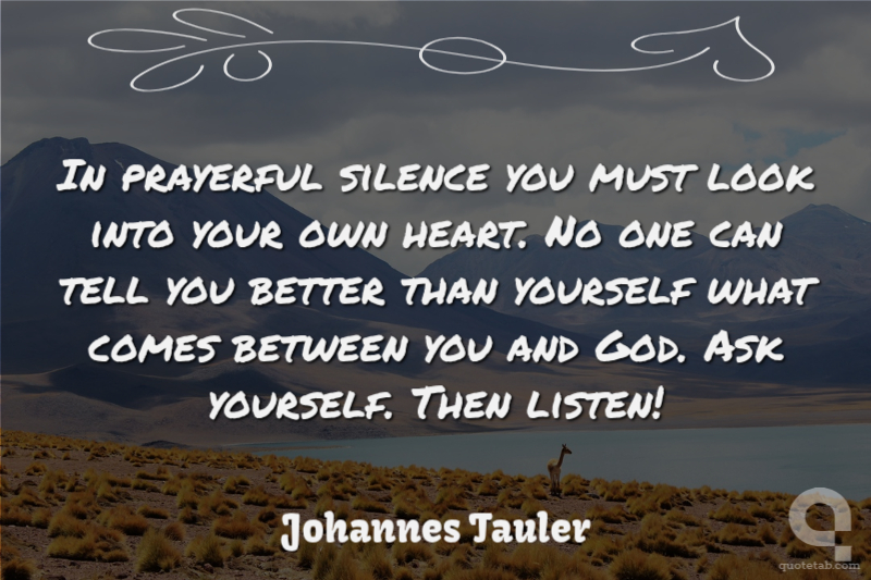 In prayerful silence you must look into your own heart. No one can tell you better than yourself what comes between you and God. Ask yourself. Then listen!