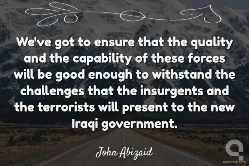 We've got to ensure that the quality and the capability of these forces will be good enough to withstand the challenges that the insurgents and the terrorists will present to the new Iraqi government.
