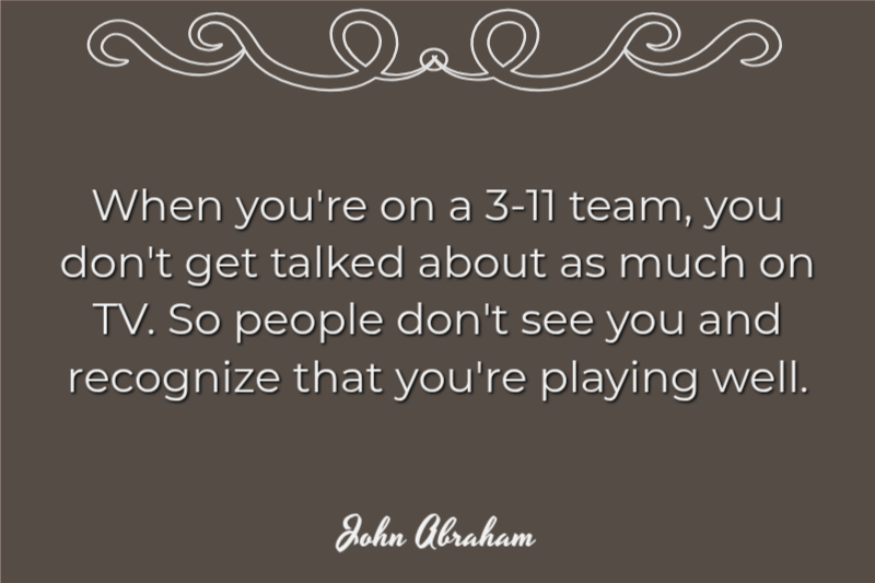 When you're on a 3-11 team, you don't get talked about as much on TV. So people don't see you and recognize that you're playing well.