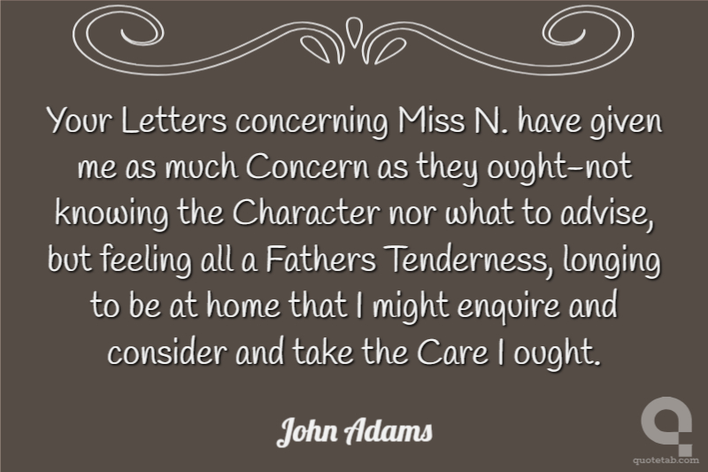 Your Letters concerning Miss N. have given me as much Concern as they ought-not knowing the Character nor what to advise, but feeling all a Fathers Tenderness, longing to be at home that I might enquire and consider and take the Care I ought.