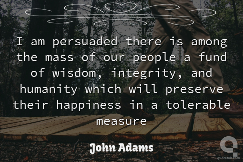 I am persuaded there is among the mass of our people a fund of wisdom, integrity, and humanity which will preserve their happiness in a tolerable measure