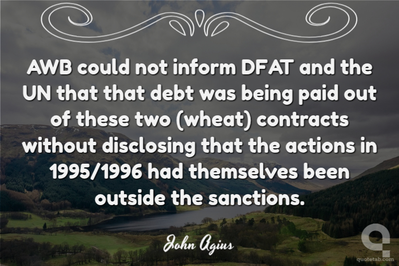 AWB could not inform DFAT and the UN that that debt was being paid out of these two (wheat) contracts without disclosing that the actions in 1995/1996 had themselves been outside the sanctions.
