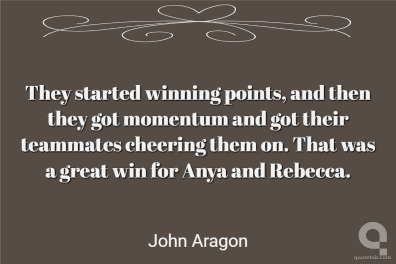 They started winning points, and then they got momentum and got their teammates cheering them on. That was a great win for Anya and Rebecca.