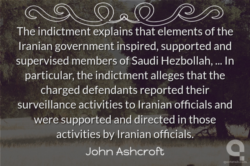 The indictment explains that elements of the Iranian government inspired, supported and supervised members of Saudi Hezbollah, ... In particular, the indictment alleges that the charged defendants reported their surveillance activities to Iranian officials and were supported and directed in those activities by Iranian officials.