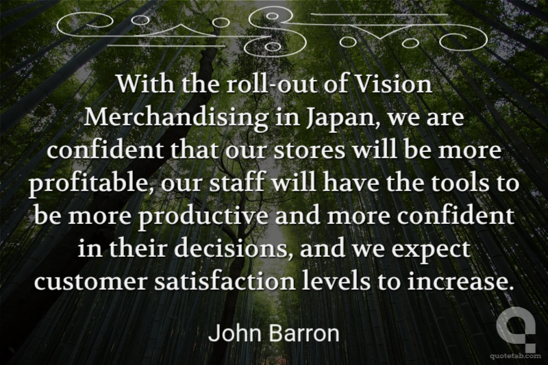 With the roll-out of Vision Merchandising in Japan, we are confident that our stores will be more profitable, our staff will have the tools to be more productive and more confident in their decisions, and we expect customer satisfaction levels to increase.