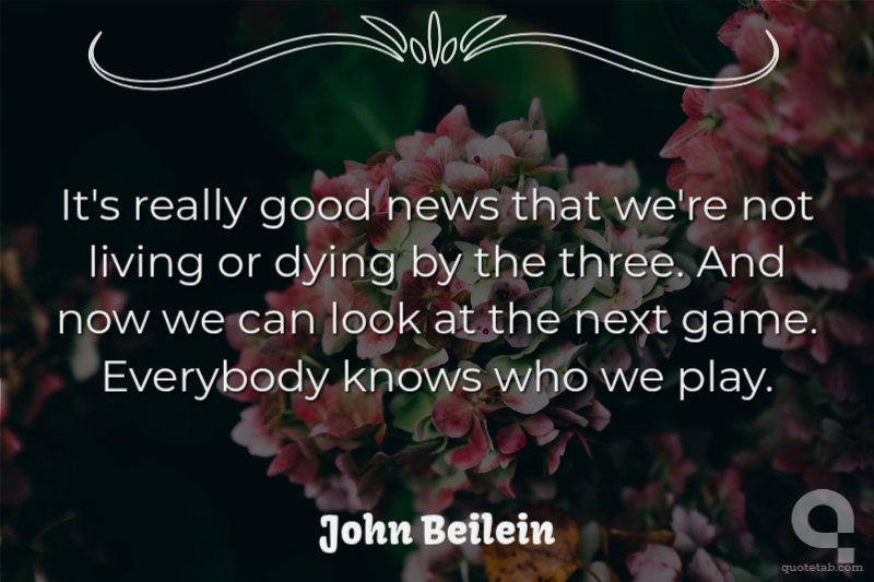 It's really good news that we're not living or dying by the three. And now we can look at the next game. Everybody knows who we play.
