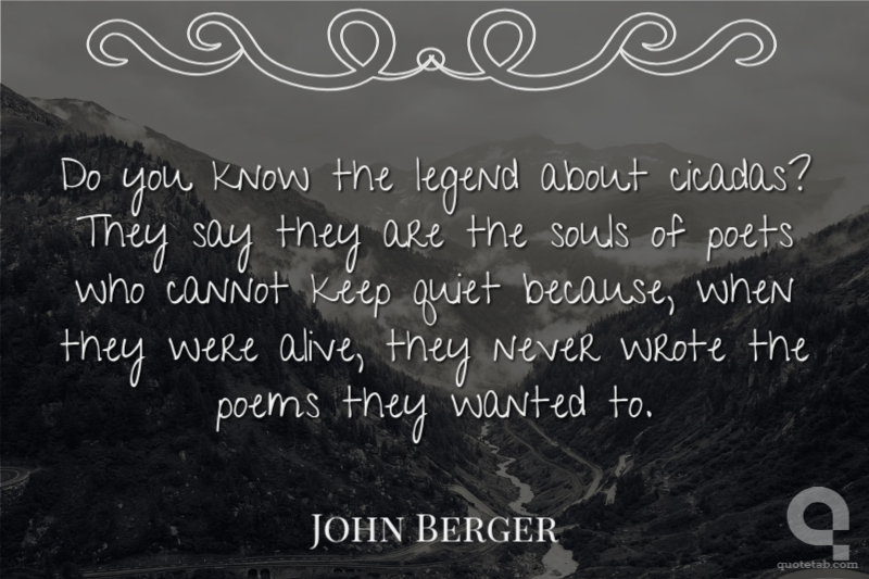 Do you know the legend about cicadas? They say they are the souls of poets who cannot keep quiet because, when they were alive, they never wrote the poems they wanted to.