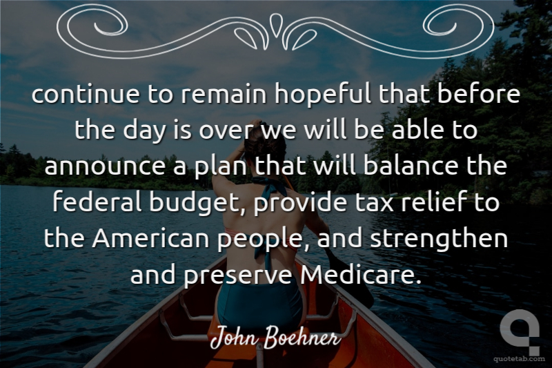 continue to remain hopeful that before the day is over we will be able to announce a plan that will balance the federal budget, provide tax relief to the American people, and strengthen and preserve Medicare.