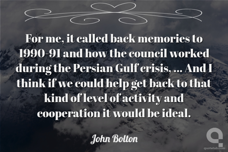 For me, it called back memories to 1990-91 and how the council worked during the Persian Gulf crisis, ... And I think if we could help get back to that kind of level of activity and cooperation it would be ideal.