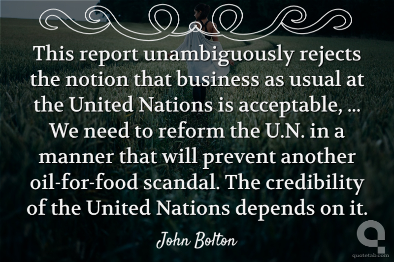 This report unambiguously rejects the notion that business as usual at the United Nations is acceptable, ... We need to reform the U.N. in a manner that will prevent another oil-for-food scandal. The credibility of the United Nations depends on it.