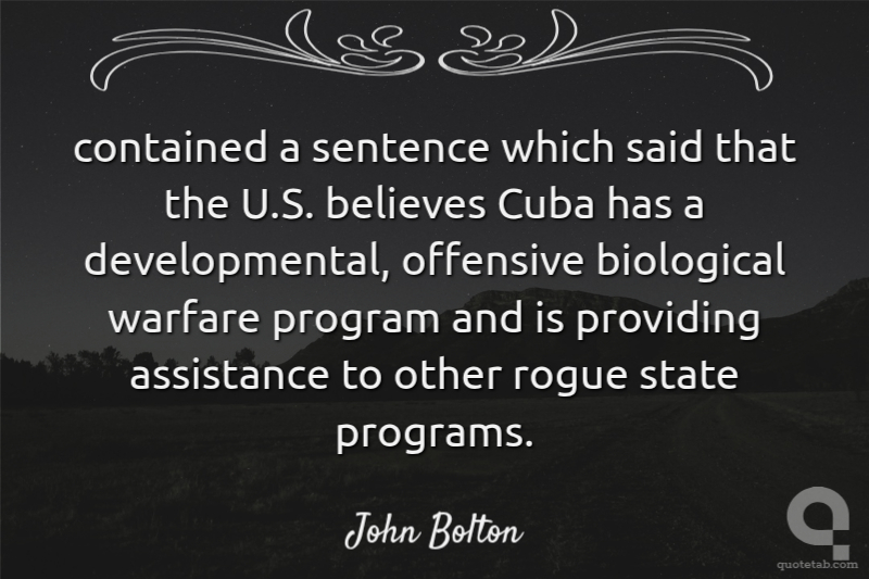 contained a sentence which said that the U.S. believes Cuba has a developmental, offensive biological warfare program and is providing assistance to other rogue state programs.