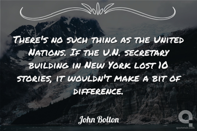 There's no such thing as the United Nations. If the U.N. secretary building in New York lost 10 stories, it wouldn't make a bit of difference.
