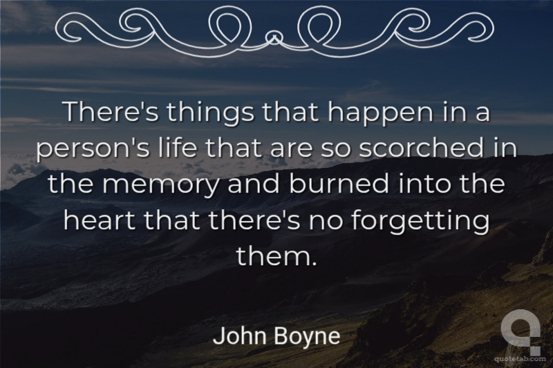 There's things that happen in a person's life that are so scorched in the memory and burned into the heart that there's no forgetting them.