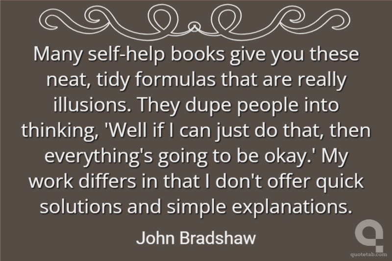 Many self-help books give you these neat, tidy formulas that are really illusions. They dupe people into thinking, 'Well if I can just do that, then everything's going to be okay.' My work differs in that I don't offer quick solutions and simple explanations.