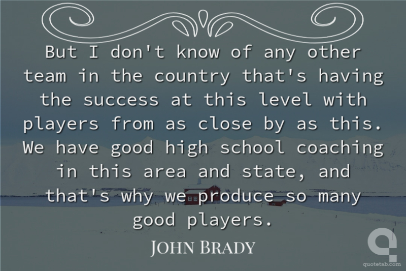 But I don't know of any other team in the country that's having the success at this level with players from as close by as this. We have good high school coaching in this area and state, and that's why we produce so many good players.