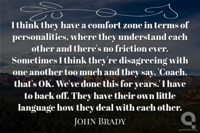I think they have a comfort zone in terms of personalities, where they understand each other and there's no friction ever. Sometimes I think they're disagreeing with one another too much and they say, 'Coach, that's OK. We've done this for years.' I have to back off. They have their own little language how they deal with each other.